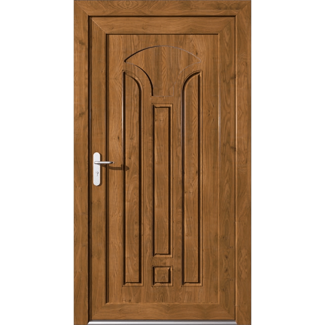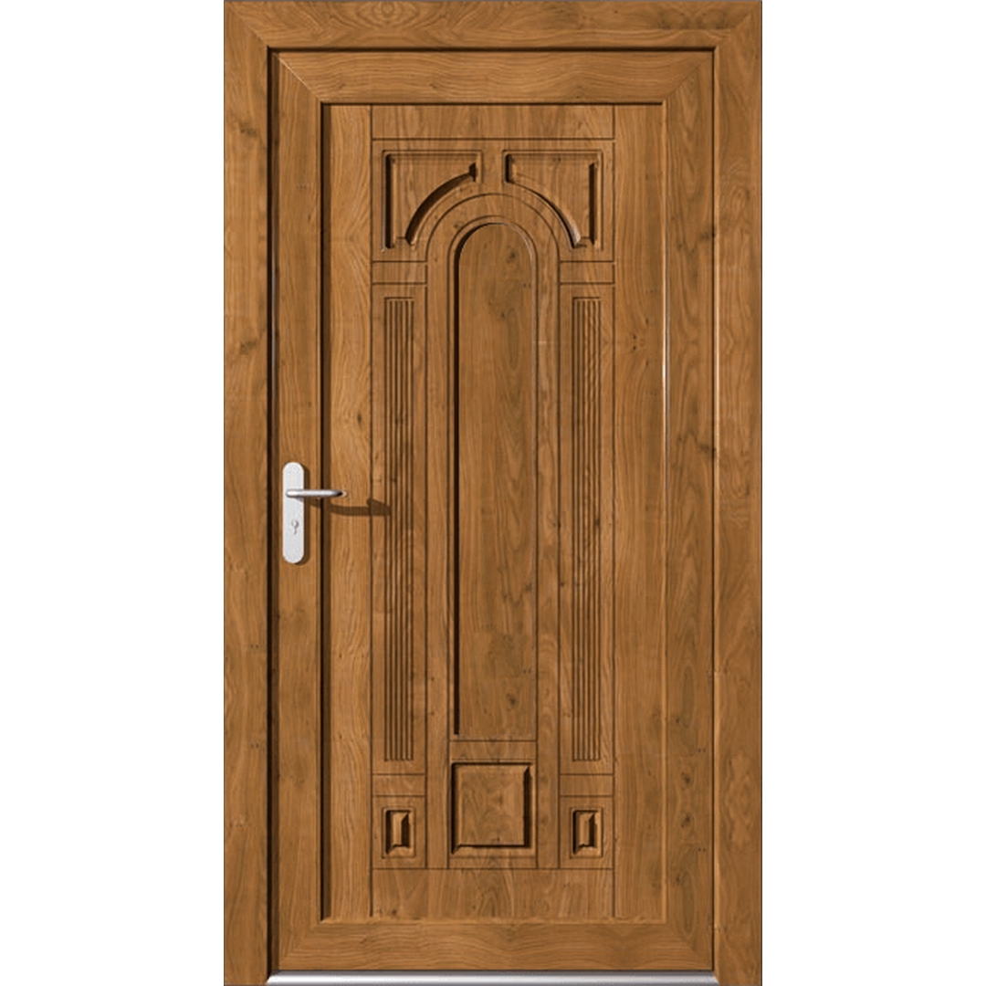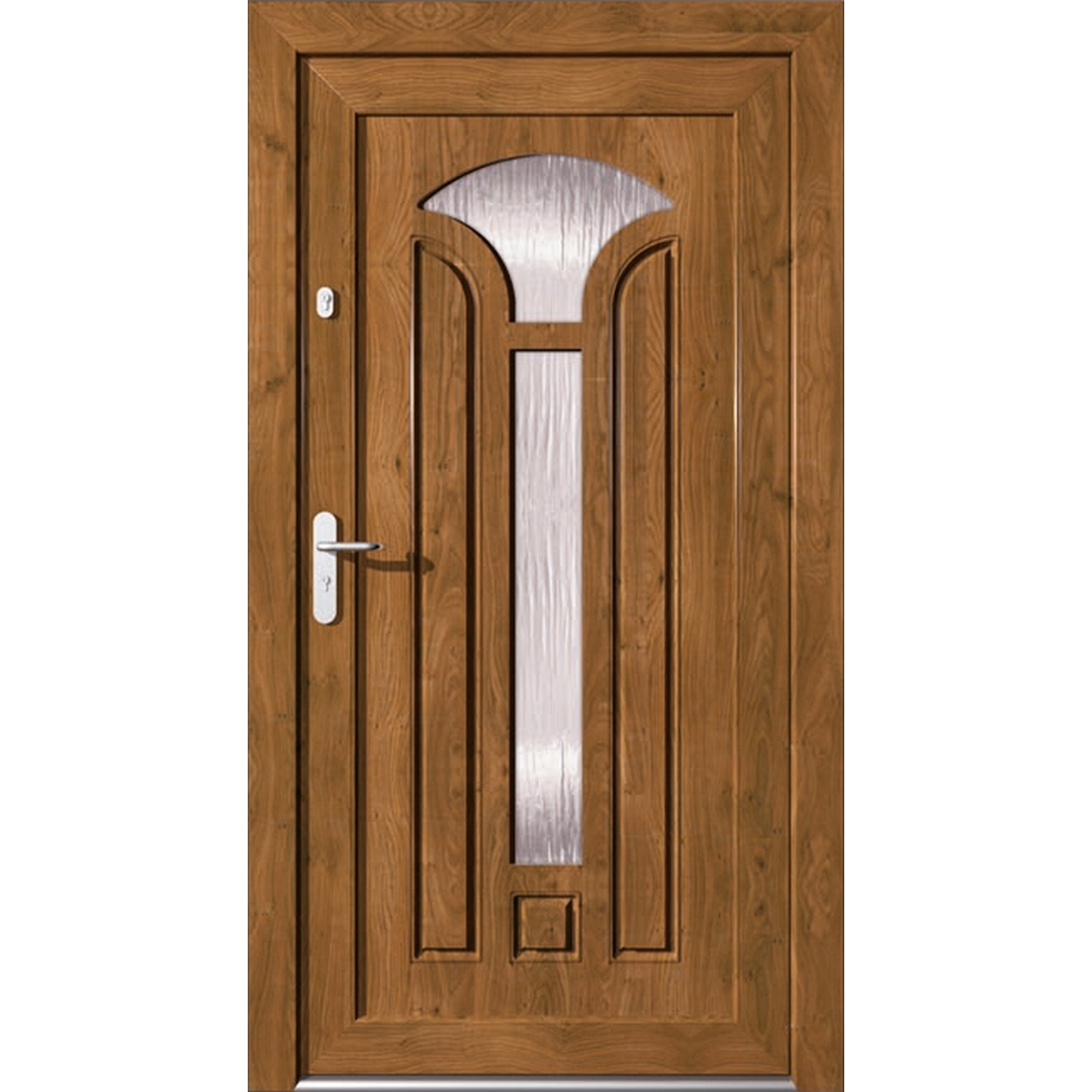 Auch die Haustüren der Eline Classic Serie setzt sich genau wie die Standard-Serie aus Profilsystemen von unterschiedlichen Herstellern zusammen. Die renommierten Hersteller aluplast, Salamander und Gealan erstellen gemeinsam ausgezeichnete Haustür-Modelle. Die Eline Classic Serie besteht aus Kunststoff-Profilen, erscheint jedoch in einer Holz-Optik. Die Kassetten-Optik und die filigranen Muster werden hierbei in die Füllung gestanzt.