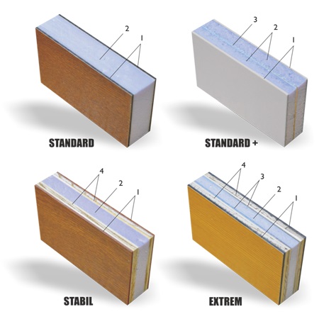 Stattdessen verwendet man sogenannte Paneele. Diese können aus unterschiedlichstem Material bestehen. Die Grundausstattung ist meistens eine Füllung aus Styropor. Aber auch Spanplatten, Sperrholz und Aluminium-Platten sind möglich.
