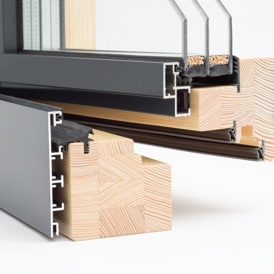 Holz-Alu-Profil mit Gummi-Dichtungen