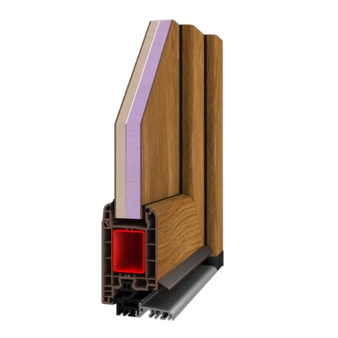 Haustür Profil aus Kunststoff im Querschnitt mit einem Holzdekor
