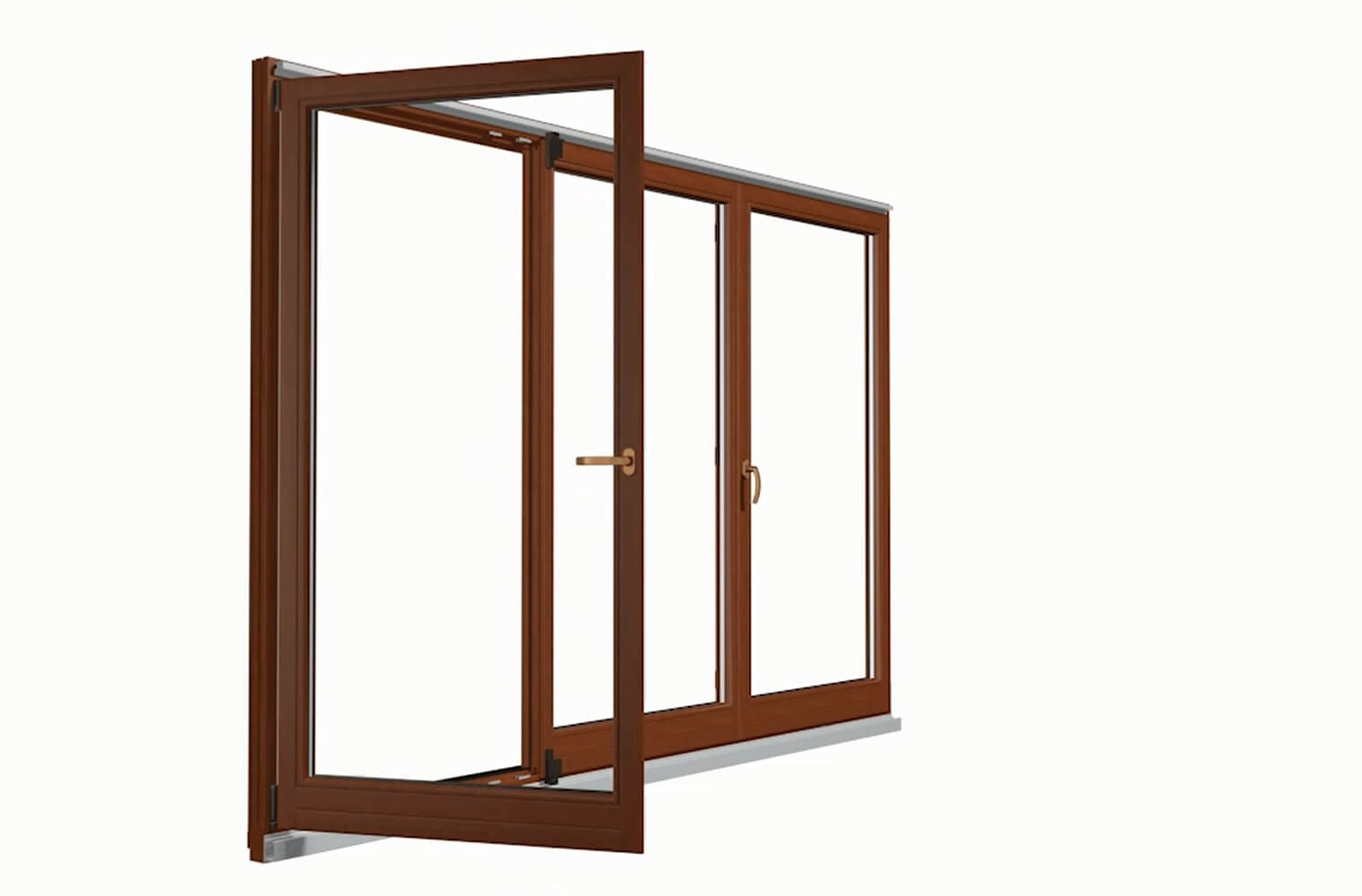 Vervolgens kiest u de openingsrichting. Zo kunnen alle elementen compact als een harmonica naar links of naar rechts worden samengevouwen. Ook is een variant mogelijk met aan één zijde een normale draaivleugel en aan de andere zijde een vouwsysteem.