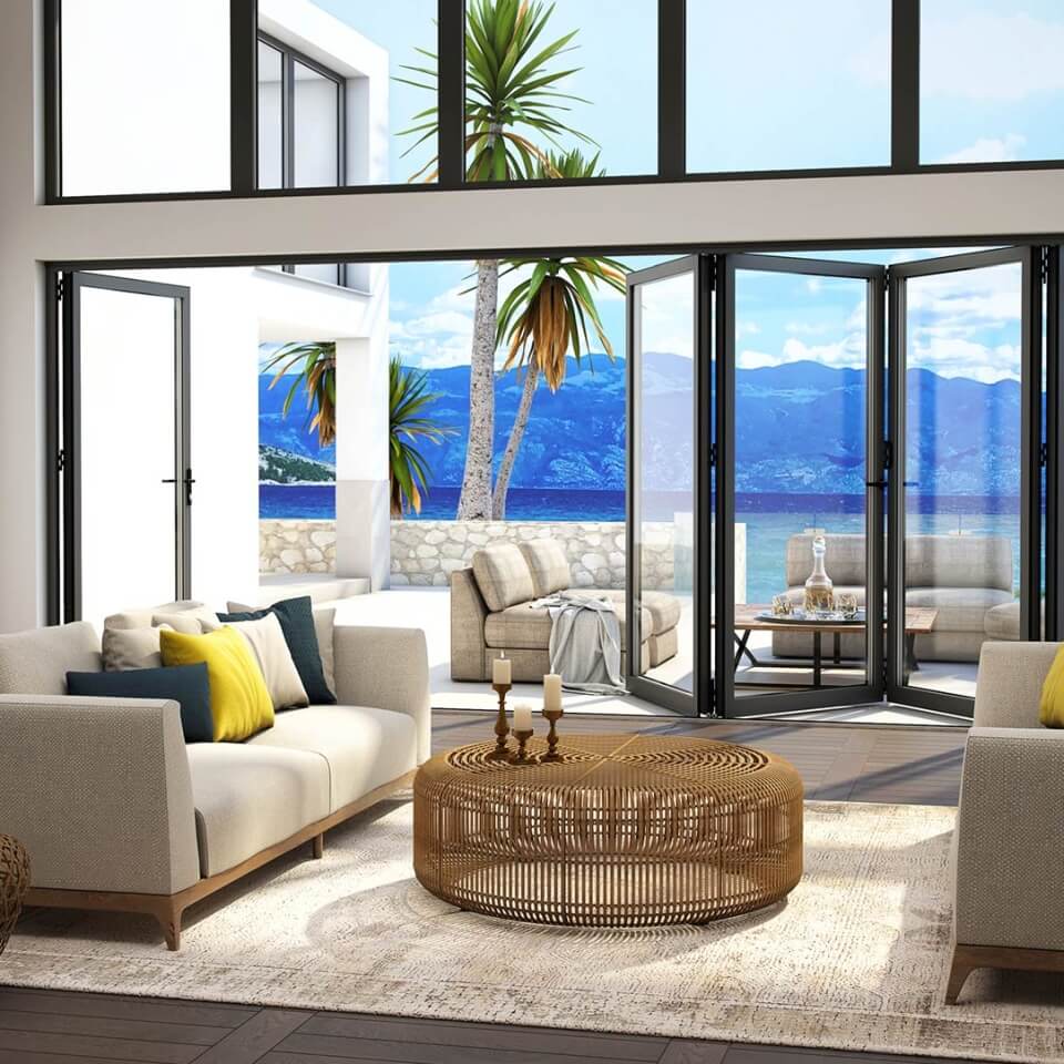 Drempelloos uitzicht met vouwschuifdeursystemen
